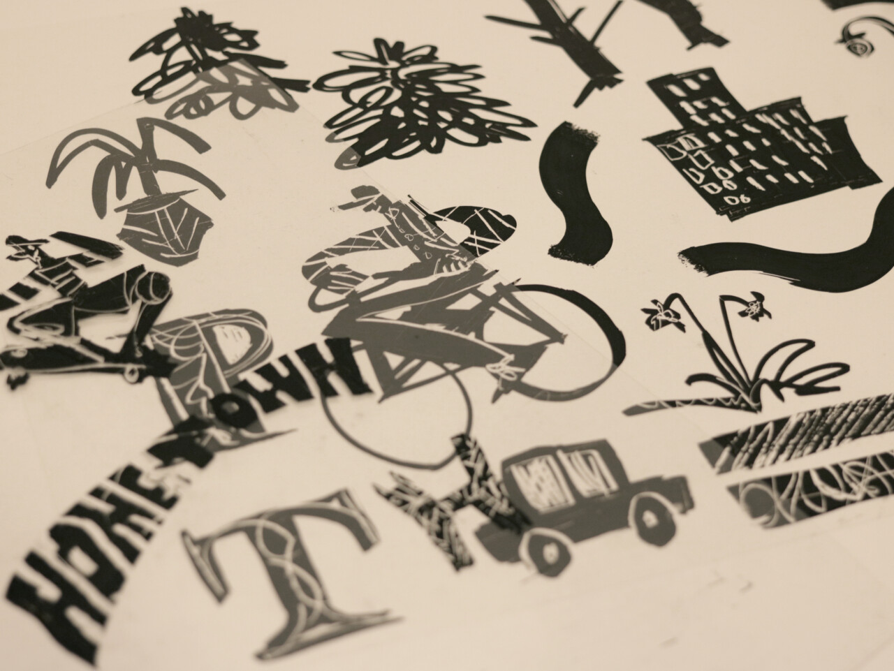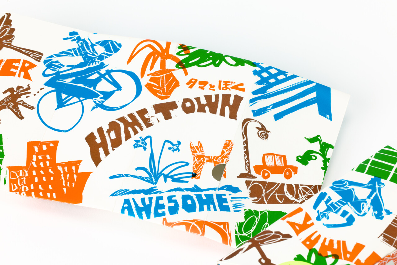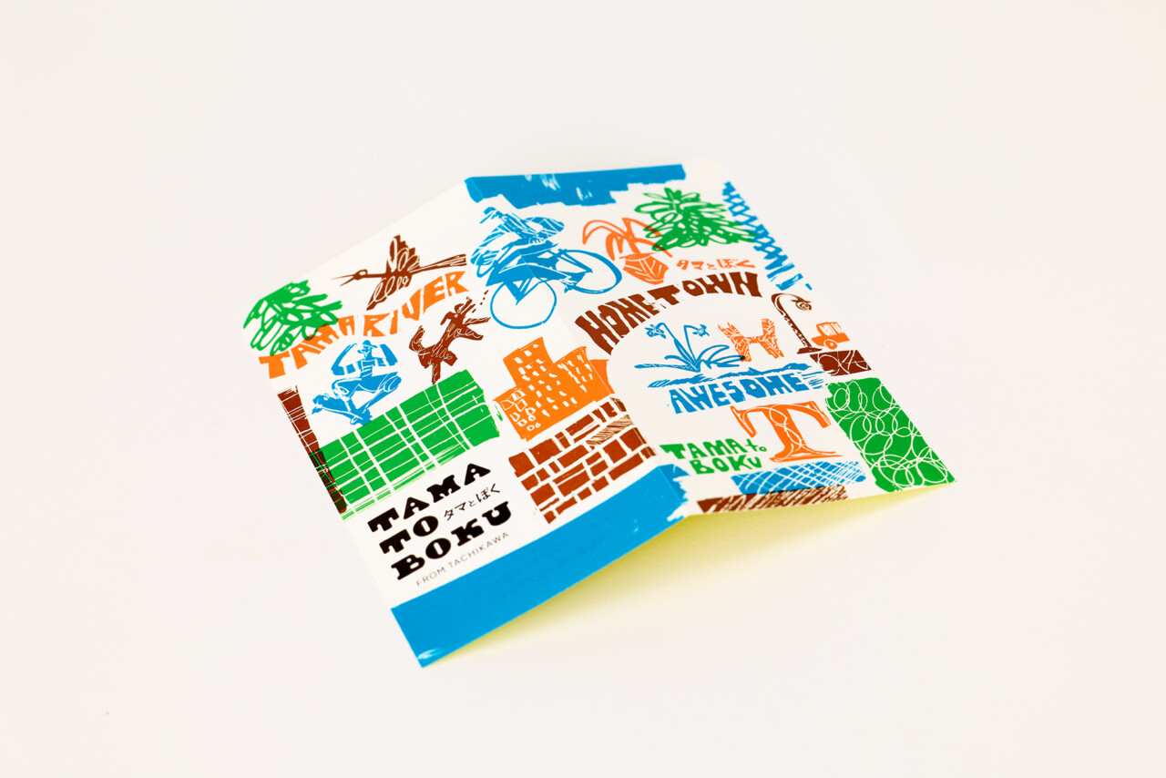 自転車でどこへでも行けて、生活も遊び場もそばにあって、いつも会うご近所さんや、勝手に名付けたノラ猫に挨拶する日々。大きな空が広がる多摩の景色・暮らしを<ぼく>という主人公にのせて描くことに。この地域にゆかりのある私たちが作ることもひとつの文脈になるように「らしさ」全開で表現した。